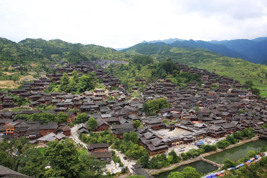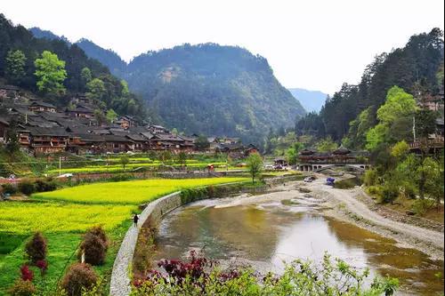 這是一個(gè)有百戶人家的苗族村寨 故名。寨內(nèi)苗民的服飾以長裙為特征,所以又稱為"長裙苗"。木吊腳樓建筑外,還可以欣賞到寨民表演的攔路酒歌、盛裝苗舞、蘆笙舞、八抬蘆笙舞等等節(jié)目。 村寨背山面水,古木參天。