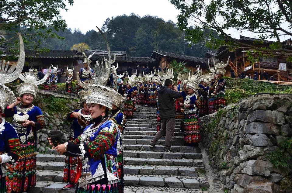 游覽結(jié)束后,乘車約1小時(shí)抵達(dá)【西江千戶苗寨】大家可以上觀景臺(tái)拍攝西江最美全景,看漫天的星星灑落在雷公山頭?;蜃孕星巴挥诿缯醒氲谋硌輬觯ㄐ枰徠边M(jìn)入),觀看苗家兒女的歌舞盛宴,或河邊清茶小酌、嘎歌古道漫步、“風(fēng)雨橋”上小憩,留一個(gè)空閑的時(shí)間,讓自己醉在這里。