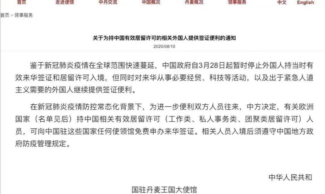 關于為持中國有效居留許可的相關外國人提供簽證便利的通知