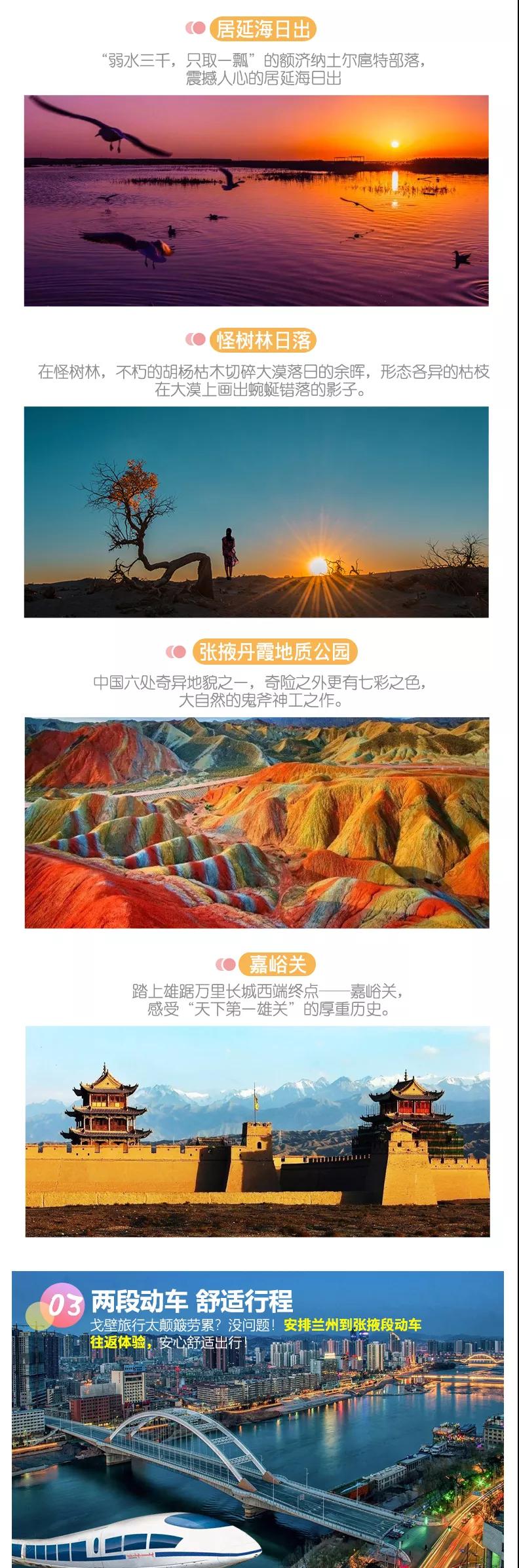 交通:當(dāng)?shù)芈糜伟褪浚ūWC一人一正座位,車型大小根據(jù)實(shí)際人數(shù)安排),且由駕駛經(jīng)驗(yàn)豐富的司機(jī)為您的出行保駕護(hù)航;蘭州到張掖、張掖到蘭州往返動車費(fèi)用【參考車次D2748(12:22-16:49)、D2674 (13:05-17:41)、D2752 (13:31-17:58)、D56(15:03-19:45) 】。