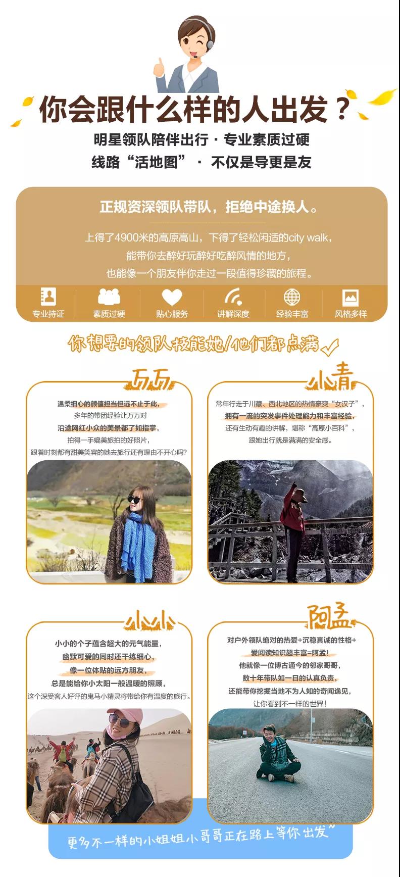 私人訂制:我們業(yè)務(wù)范圍囊括了全國各大城市,川西、西北、東北,在路上永遠(yuǎn)有我們的身影。我們將為每一個有定制需求的你策劃出獨(dú)屬于自己的完美旅行。