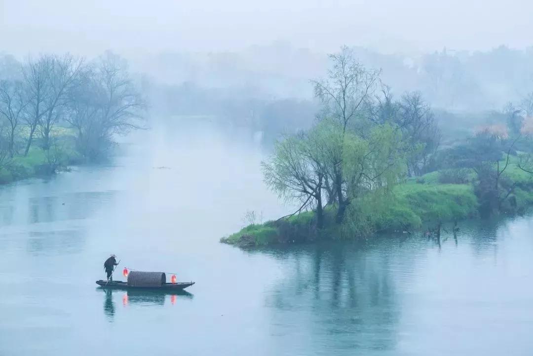 月亮灣依山伴水,水面平靜如鏡。一兩葉小舟,遠(yuǎn)遠(yuǎn)近近高低錯落的徽派民居互相輝映,形成了一幅絕美的畫面。