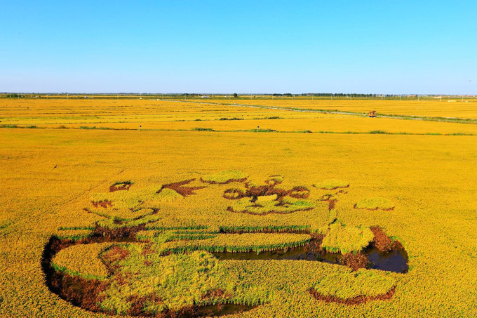 你可能見過各種繪畫形式,但你一定沒見過稻為筆,田為畫布,風奏樂,蒼穹下的奇特畫卷。一片金燦燦的稻田,混合著各種作物的色彩,一幅幅造型各異的的美麗畫卷,在這個收獲的季節(jié)格外的格外的生機勃勃。