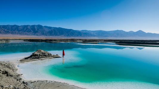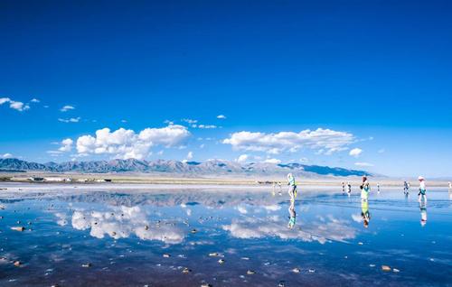【茶卡鹽湖】被國家旅游地理雜志評為“人一生必去的55個地方”之一,這里的采鹽歷史非常悠久,湖水含鹽量很大,湖面上會自然結(jié)晶,一片純白。結(jié)晶之上是一層薄薄的露水,將天空、云朵和對岸的山都倒映在白色的湖里,非常漂亮,所以也被稱為“中國的天空之境”。大家可以乘坐景區(qū)內(nèi)的小火車前往景區(qū)深處游玩,如果不乘坐小火車,沿著鐵軌向湖深處散散步拍拍照片也是非常愜意的。