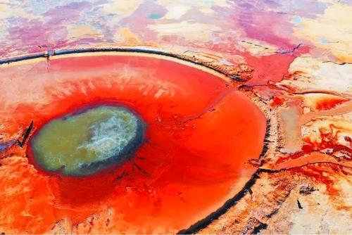 隨后我們前往阿拉爾草原深處去探索一方汩汩噴涌了上千年的地熱噴泉——【“惡魔之眼”艾肯泉】?!鞍稀痹诿烧Z中意為“可怕”,而“艾肯泉”在蒙語中又意為“源頭”,因其湖水成分艾肯泉周圍寸草不生且形成了一個紅褐色的圓形,正中央便是汩汩而出的泉水,這便形成了一個巨大的“眼睛”,被人稱為“大地之眼”。從空中俯瞰航拍,這巨大的眼睛脈絡(luò)清晰,栩栩如生,在它周圍點綴著許多青色的小泉眼,神秘而震撼;除了其令人驚奇的血色眼睛造型,艾肯泉還有神奇的“喊泉”屬性,據(jù)說站在岸邊朝它大喊,或者是在岸邊跺跺腳,噴泉口的水流量就會加大,會噴涌得更高。