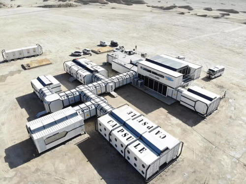 在這片“地球上最不像地球的地方”,以科學(xué)、科普和科幻為核心, 中國首個研學(xué)火星模擬基地——“火星營地”拔地而起。該項目斥資1.5億,營地建設(shè)風(fēng)格模擬未來人類移居火星后的生存環(huán)境,搭建有“總部大樓”“火星艙”等,和周圍的山色融為一體,就像曾經(jīng)在電影中出現(xiàn)的場景,來到營地的所有人都能身臨其境地體驗到居住在火星的狀態(tài),不由自主地想盡快進入生存挑戰(zhàn)角色,完成“火星移居”的課題研究。