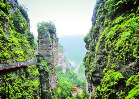 大龍湫位于谷底連云嶂,水從卷壁中凌空騰飛而下,落差197 米,為中國瀑布之最,有“天下第一瀑”之譽(yù)。大龍湫瀑布是我國最長的瀑布,它的附近有一股說不出的涼爽,空氣格外的清新,冬暖夏涼。建議最好在八、九月間挑個(gè)雨后晴朗的日子,水量極大又可觀五色長虹,一舉兩得。 ·此外,四周的崖壁上布滿了歷代文人墨客的題詞,也是這里的一個(gè)看點(diǎn)。