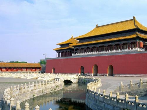 北京故宮于明成祖永樂四年(1406年)開始建設,以南京故宮為藍本營建,到永樂十八年(1420年)建成,成為明清兩朝二十四位皇帝的皇宮。民國十四年國慶節(jié)(1925年10月10日)故宮博物院正式成立開幕。北京故宮南北長961米,東西寬753米,四面圍有高10米的城墻,城外有寬52米的護城河。紫禁城有四座城門,南面為午門,北面為神武門,東面為東華門,西面為西華門。城墻的四角,各有一座風姿綽約的角樓,民間有九梁十八柱七十二條脊之說,形容其結構的復雜。