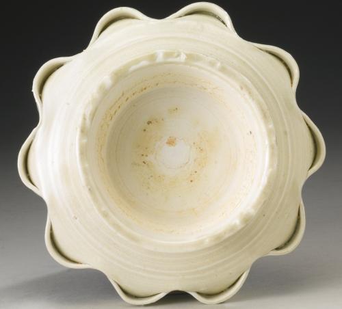 定窯創(chuàng)燒于唐朝后期。從這時(shí)一直到五代的定窯瓷器,還較為粗糙簡(jiǎn)單,器型以碗為主,正處于向精瓷的過(guò)渡階段。但在五代中后期,定窯白瓷出現(xiàn)了一次根本性的飛躍。所燒瓷器不再施化妝土,胎、釉呈現(xiàn)出精、白薄的特征。有些器物的白度甚至超過(guò)了邢窯的細(xì)白瓷器。