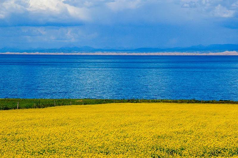 青海湖在不同的季節(jié)里,景色迥然不同。夏秋季節(jié),當(dāng)四周巍巍的群山和西岸遼闊的草原披上綠裝的時(shí)候,青海湖畔山清水秀,天高氣爽,景色十分綺麗。
