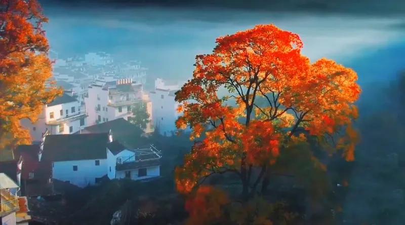 婺源的紅秋天,美哭了全世界。清晨,云霧彌漫,炊煙裊裊,在空中肆意流動(dòng)變幻著各種形態(tài),如一幅未干的水粉畫(huà)。