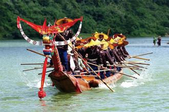 扒龍舟歷史悠久,是多人集體劃槳競賽。龍舟競渡分為請龍、祭龍神、游龍和收龍等幾個版塊。龍舟競渡前一般都要舉行隆重的祭祀儀式,先要請龍、祭神。在端午前要擇吉日從水下起出,祭過神后,安上龍頭、龍尾,再準備競渡。閩、臺則往媽祖廟祭拜。在過去,人們祭祀龍神時氣氛很嚴肅,多祈求福佑、風調(diào)雨順、去邪祟、攘災(zāi)異、事事如意。在湖北的屈原家鄉(xiāng)秭歸,也有劃龍舟祭拜屈原的儀式流傳。