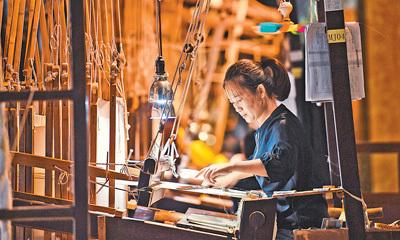 南京云錦研究所的一線織工有200多人,但多數(shù)都是從事流水線操作的普通織工,掌握云錦“核心工藝”的骨干力量少之又少。南京云錦人的織錦秘訣都是依靠口傳心授代代相傳。古代云錦的傳統(tǒng)收徒儀式分為6個環(huán)節(jié),依次是拜祖師、徒弟改口、師傅訓誡、徒弟承諾、戒尺加身、師徒互贈禮。按照行規(guī),徒弟先要向師傅贈送傳統(tǒng)的“六禮束脩”——肉干、芹菜、蓮子、紅棗、桂圓、紅豆。師傅的回禮也是6樣,金線、五彩絲線、孔雀羽、意匠稿、蔥、芹菜。