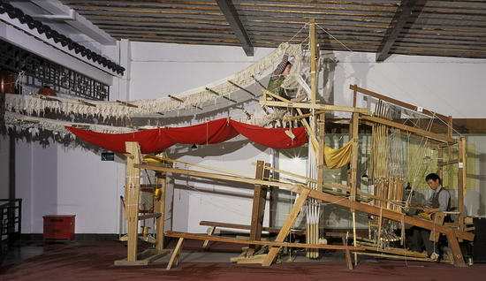 在各式絲織品中,只有云錦還保持著傳統(tǒng)的特色和獨特的技藝,一直保留著傳統(tǒng)的老式提花木機織造。