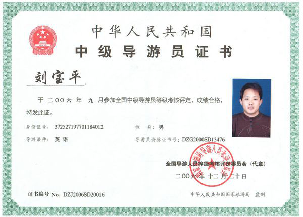 公司總經(jīng)理是聊城市第一位中級(jí)導(dǎo)游員,也是聊城目前唯一英文中級(jí)導(dǎo)游員。 相信我們能為您提供最專業(yè)的導(dǎo)游服務(wù);