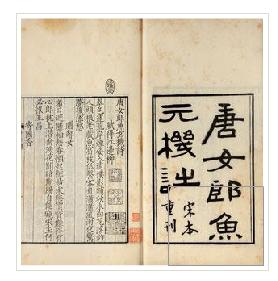 北圖所存宋本《唐女郎魚玄機詩》,乃宋陳起陳解元書籍鋪所刻,卷尾鐫有“臨安府棚北睦親坊南陳宅書籍鋪印”。此本,明代曾先后為朱承爵、項元汴等藏書家收藏。至1803年(清嘉慶八年),又為大藏書家黃丕烈所得。1916年(民國五年),又落入袁克文之手。其后散出,為北圖收藏,終成國家藏書。
