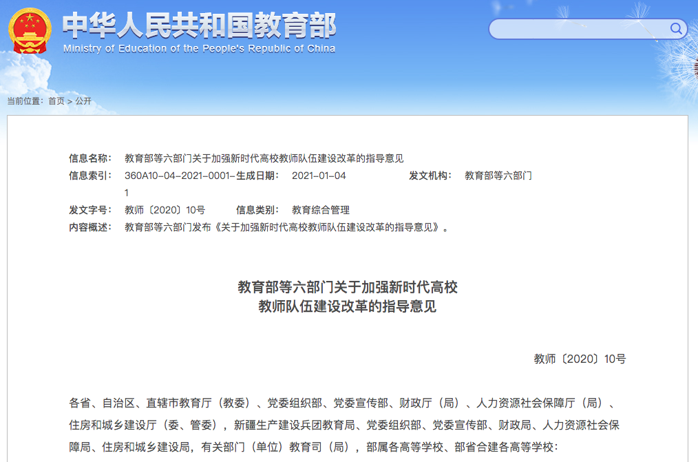 ——教育部教師工作司負(fù)責(zé)人就《關(guān)于加強(qiáng)新時代高校教師隊伍建設(shè)改革的指導(dǎo)意見》回答