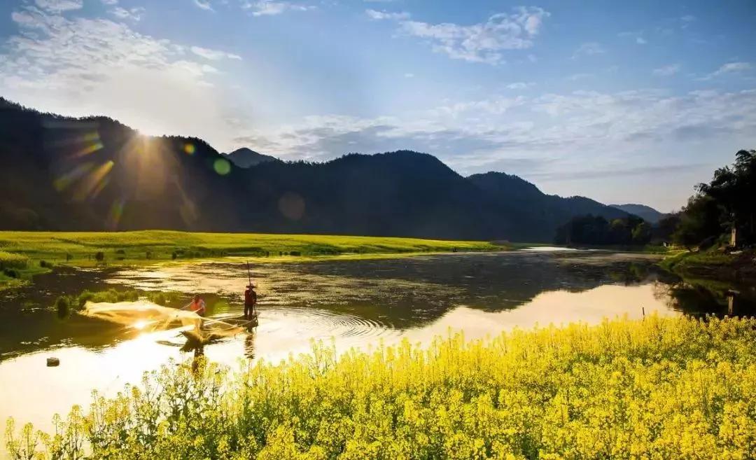 水色甄美,四季澄碧,沿江兩岸,青山蜿蜒,峰巒疊翠。船行在新安江上,兩岸樟桉疊翠,油菜花黃,粉墻黛瓦點(diǎn)綴其間,水墨徽州宛若天成!