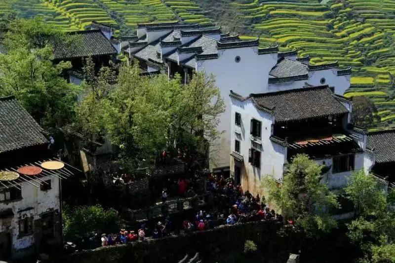 早餐后前往梯云村落、夢(mèng)幻田園--篁嶺人家,【80公里】一個(gè)懸掛在山坡上的古村落,群山環(huán)繞的數(shù)百棟徽派古民居在百米落差的坡面錯(cuò)落有序,與對(duì)面層層疊疊的千畝梯田花海遙相呼應(yīng),地?zé)o三尺平,自然條件的局限卻激發(fā)了先民的想象和創(chuàng)造力,從而在無(wú)意間造就了一處中國(guó)絕無(wú)僅有的“曬秋人家”風(fēng)情畫(huà)。篁嶺屬典型山居村落,民居圍繞水口呈扇形梯狀錯(cuò)落排布。篁嶺因”曬秋”聞名遐邇,村落“天街”似玉帶將經(jīng)典古建串接,徽式商鋪林立,前店后坊,一幅流動(dòng)的縮寫(xiě)版“清明上河圖”。