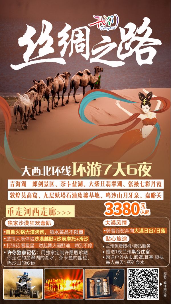 青海湖.茶卡鹽湖.莫高窟.大柴旦翡翠湖.張掖七彩丹霞.鳴沙山月牙泉.嘉峪關(guān).九層妖塔石油小鎮(zhèn) 經(jīng)典絲路