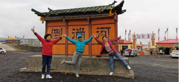 在倒淌河合影