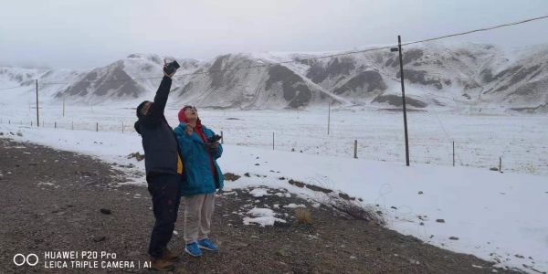 在去往青海湖路上飄起雪花