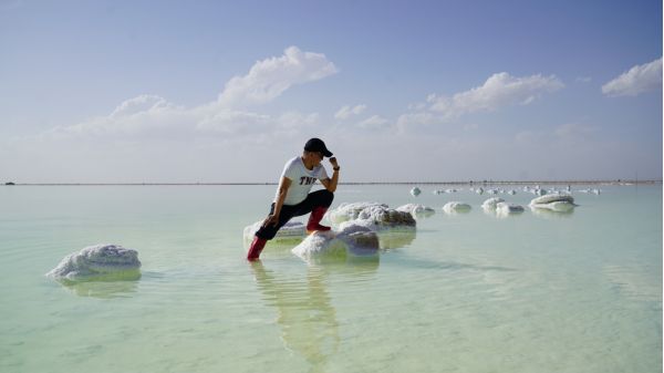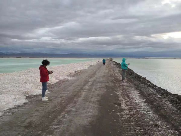 「我們」? 到達(dá)了全是鹽花的察爾汗鹽湖