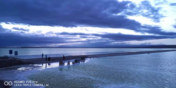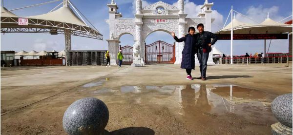 但是接近茶卡鹽湖的時(shí)候奇跡出現(xiàn)了,天放亮了,雨漸漸的小了,而我們進(jìn)入景區(qū)的時(shí)候,雨突然停了。太陽也越出了云層,向我們微笑著招手。大家歡呼了,真是上天保佑我們能看到鹽湖了。