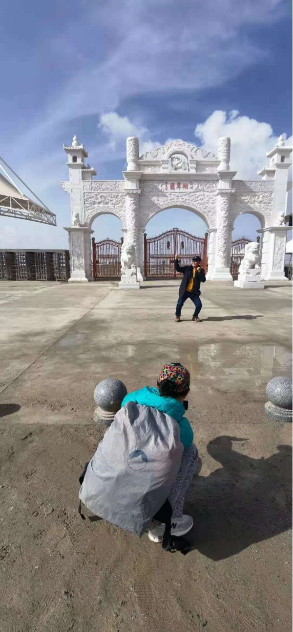 我們攝影團(tuán)住的酒店是一家精致酒店。早餐也還可以。7.30分準(zhǔn)時(shí)上車出發(fā)。劉總上車后說:今天要去看鹽湖,據(jù)說那里溫度很低,在攝氏6度左右。要求大家戴好帽子,眼鏡,涂好防曬霜,輻射很嚴(yán)重。大家都帶了無人機(jī)重點(diǎn)是要航拍。我怕麻煩只帶了兩個(gè)相機(jī)。一個(gè)24 —600小變焦,一個(gè)16—35佳能5D2。
