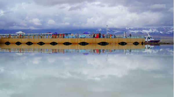 茶卡鹽湖,別稱茶卡或達(dá)布遜淖爾,是位于青海省海西蒙古族藏族自治州烏蘭縣茶卡鎮(zhèn)的天然結(jié)晶鹽湖,是柴達(dá)木盆地四大鹽湖之一。"茶卡"是藏語,意即鹽池,也就是青海的鹽;"達(dá)布遜淖爾"是蒙古語,也是鹽湖之意。
