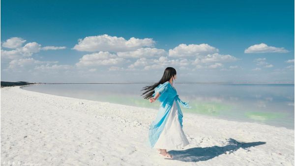 秋冬時(shí)的鹽湖凍結(jié)成冰,白色的湖面和藍(lán)色的天空時(shí)畫(huà)面的主要色彩;春夏之季,湖水恢復(fù)本來(lái)的淡藍(lán)色面貌。穿衣搭配建議: