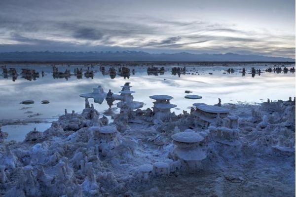 茫崖翡翠湖,位于青海與新疆交界處的茫崖市花土溝鎮(zhèn)。翡翠湖面積26平方公里,湖面開闊,碧波蕩漾,一邊倒映著雅丹地貌油沙山,一邊倒映著昆侖雪山,山與湖水相交相應,在不同的時間和不同的角度下,呈現(xiàn)出絢麗多彩的景象。夕陽余暉染紅天穹倒映湖面,構(gòu)成一副魔幻般的畫卷。風平浪靜時,碧綠如染,清澈透亮宛若鏡面,顏色純美剔透,如同鑲嵌在戈壁上的翠玉,冬季的翡翠湖,令人震撼。