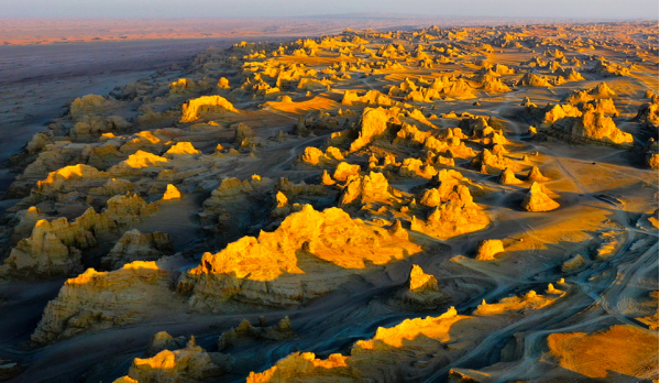 茫崖市位于柴達木盆地的西北邊緣,地處阿卡騰能山與阿喀祁漫塔格山之間。西北緣山呈峰疊的阿爾金山,南依白雪皚皚的昆侖山脈,是青海與新疆的交界之地,為青海省西北門戶。