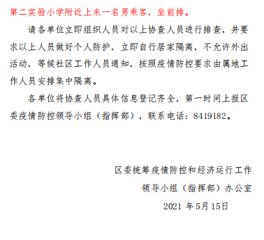 請各單位立即組織人員對以上協(xié)查人員進行調查 并要求以上人員做好個人防護,立即自行居家隔離