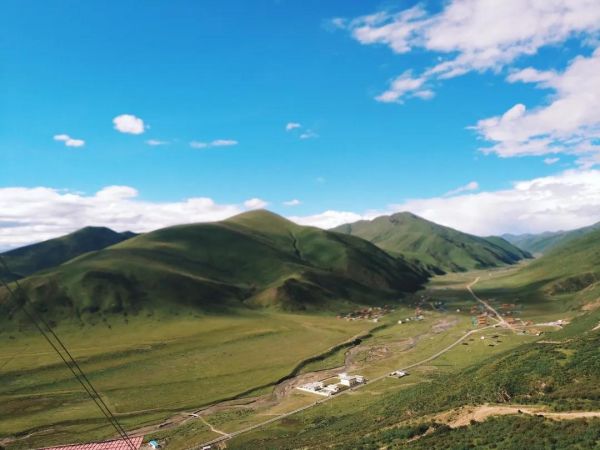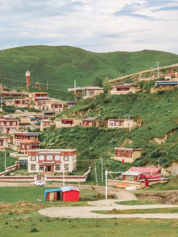 分散在山腰處的小紅房子,看起來別有一番風(fēng)味,就像是被遺忘的秘境,在這片草原上寂靜的生長著。