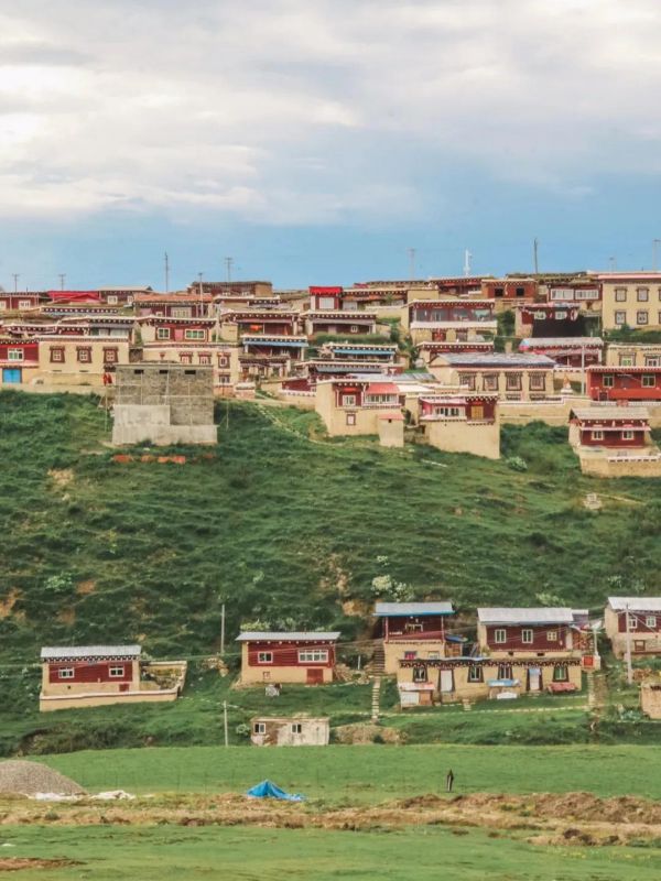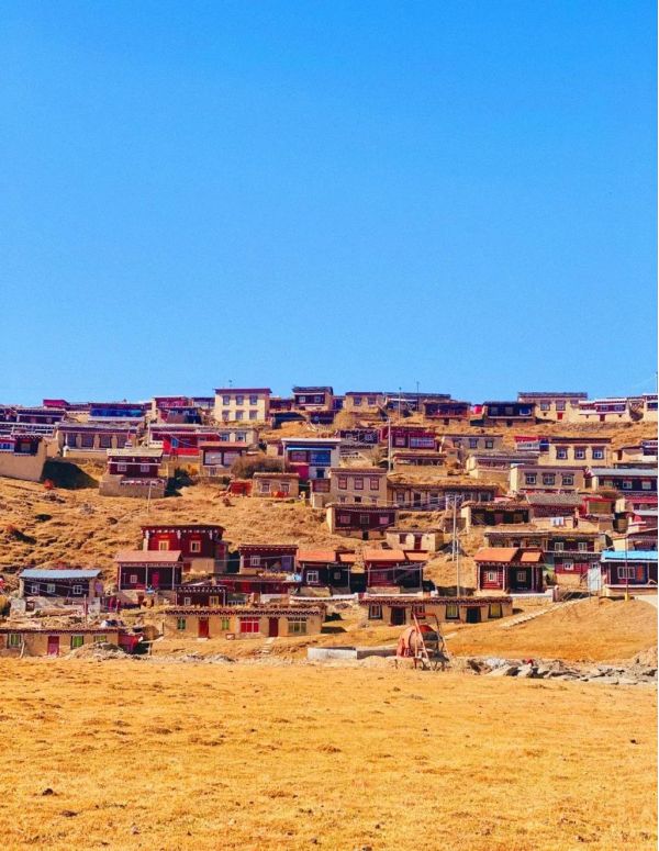 雖說山坡上的紅色藏寨不如色達(dá)的密集宏偉,但來到這里還是被驚艷到了。
