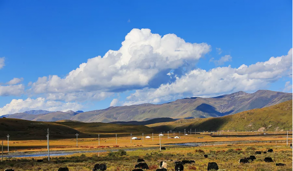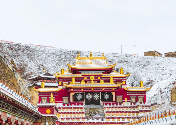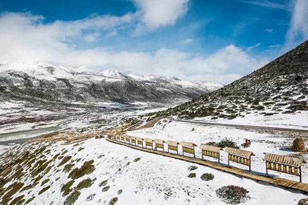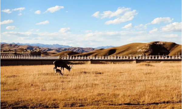 冬日時節(jié)的草原轉(zhuǎn)成了一片金黃,常有大雪紛飛落下,又換上純白的雪地模樣,草原環(huán)繞,雪山相伴,更添神秘色彩。