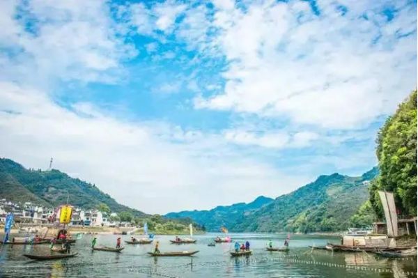 7:00準(zhǔn)時集合出發(fā),約8:30到達(dá)深渡碼頭,乘坐畫廊游船,這是一條聞名中外的“唐詩之路”,今有“山水畫廊、清涼世界”的美譽(yù)。它像一條閃閃發(fā)亮的銀練,穿行于錦峰秀嶺、山鄉(xiāng)古建筑之間。兩岸點(diǎn)綴著粉墻黛瓦的徽派建筑,當(dāng)清晨晨霧縈繞抑或傍晚炊煙裊裊之時,頗有中國水墨山水畫的味道。