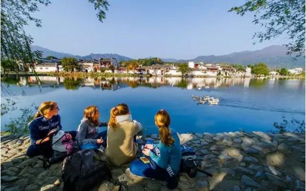 走進(jìn)村莊,你會發(fā)現(xiàn)有許多人在這里寫生,一塊塊畫板立在身前,畫紙上的取景與配色大都不相同。有的主用青色和黑白,那是春天的清秀宏村;有的主用橙色和黑白,這是當(dāng)季的宏村。一千個人眼里有一千個宏村,這些豐富多彩的配色,能夠讓到訪者親身經(jīng)歷一場視覺的盛宴。