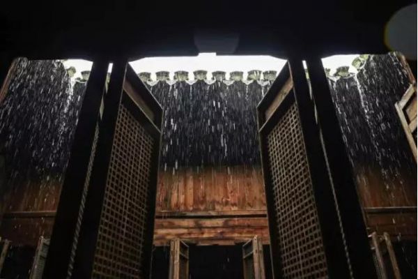 徽州的民居建筑,在高大的馬頭墻內(nèi),天井是古民居的一個特色,上可見天,下可排水,采光通風(fēng),江南多雨時雨水沿水梘流向屋內(nèi)下道(明堂),俗稱四水歸堂,寓意為聚斂財(cái)氣。
