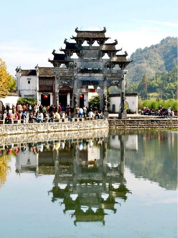 西遞坐落于黃山南麓,依山傍水,山水相依,與徽風(fēng)光、徽文化、徽風(fēng)情、徽飲食水乳交融,完美融合。