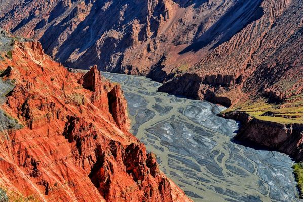 河水沖出天山后,切割獨山子西南方向傾斜平原形成的神奇風光峽谷,峽谷兩岸的階地歷歷在目,至少可分9級,階地面上是荒漠草原,生長著蒿類、針茅等。在獨山子境內(nèi)奎屯河流經(jīng)獨山子大峽谷之中峽谷近南北走向,峽谷古幣懸崖陡峭,谷底流水時分時合,谷肩地面是荒漠草原,站在谷肩處遙望峽谷,呈現(xiàn)在眼前的是一幅典型的大峽谷景象。 天山雪水及雨水流下來經(jīng)過這里的土壤形成的沖積溝壑,在谷壁雕鑿出這些奇特景觀。峽谷是從山腳下開始,在草原上形成層次分明土壤層。但顏色主要還是以灰色、黑色為主。 峽谷的雪水很大,但是經(jīng)過這些土壤的時候,攜帶著泥沙水變得很混濁。