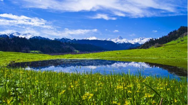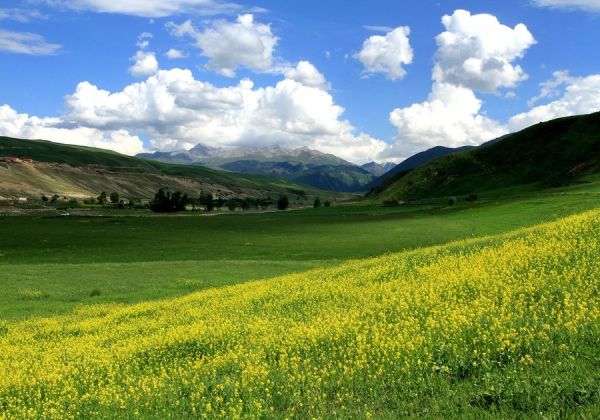 唐布拉草原得名于阿吾拉勒山北坡唐布拉溝東側(cè)有幾處突兀的巖石,因巖石酷似玉璽、印章而得名。唐布拉草原意即"印章"。唐布拉草原景點眾多,據(jù)說有113條溝,每條溝都有各自的特色。流泉瀑、溪水淙淙;奇特的阿爾斯郎石林,壯觀的草原落日;冰峰雪嶺倒映在靜寂幽深的高山湖泊之中。溫熱清爽的溫泉,藍藍的天,綠茵茵的草坂,每時每刻給人以美的享受。