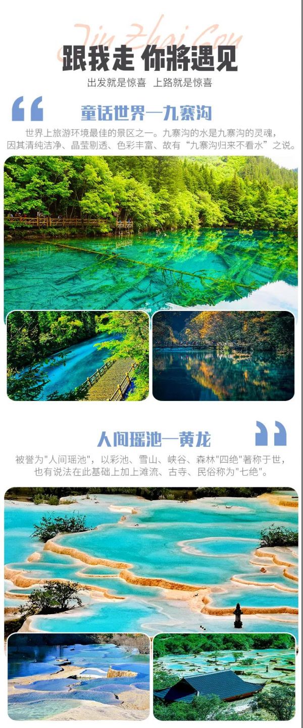 4、九寨溝景區(qū)實行分區(qū)域開放,開放區(qū)域為溝口經諾日朗瀑布至長海,扎如溝的扎如寺及日則溝的鏡海;其中,長海、五彩池、鏡海、諾日朗瀑布、樹正群海、雙龍海瀑布、扎如寺等景觀原則上為步行游覽區(qū),具體游覽方式請聽從隨車講解員安排;
