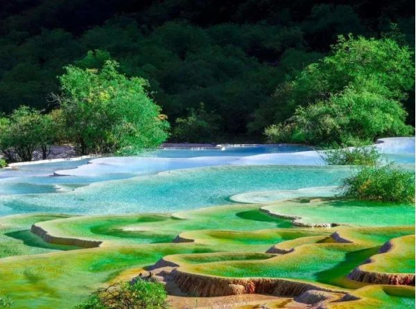 早上我們告別童話世界一般的九寨溝,前往有“人間瑤池”美譽的【黃龍風景區(qū)】。黃龍風景區(qū)擁有獨特的景觀、原始的生態(tài)和豐富的資源,其鈣化景觀非常壯觀,鈣化邊石壩彩池、鈣化灘、鈣化扇、鈣化湖、鈣化塌陷湖、坑,以及鈣化瀑布、鈣化洞穴、鈣化泉、鈣化臺、鈣化盆景等一應俱全,堪稱人間仙境。主景區(qū)黃龍溝位于岷山主峰雪寶頂下,面臨涪江源流,似中國人心目中"龍"的形象,因而歷來被喻為"中華象征"。