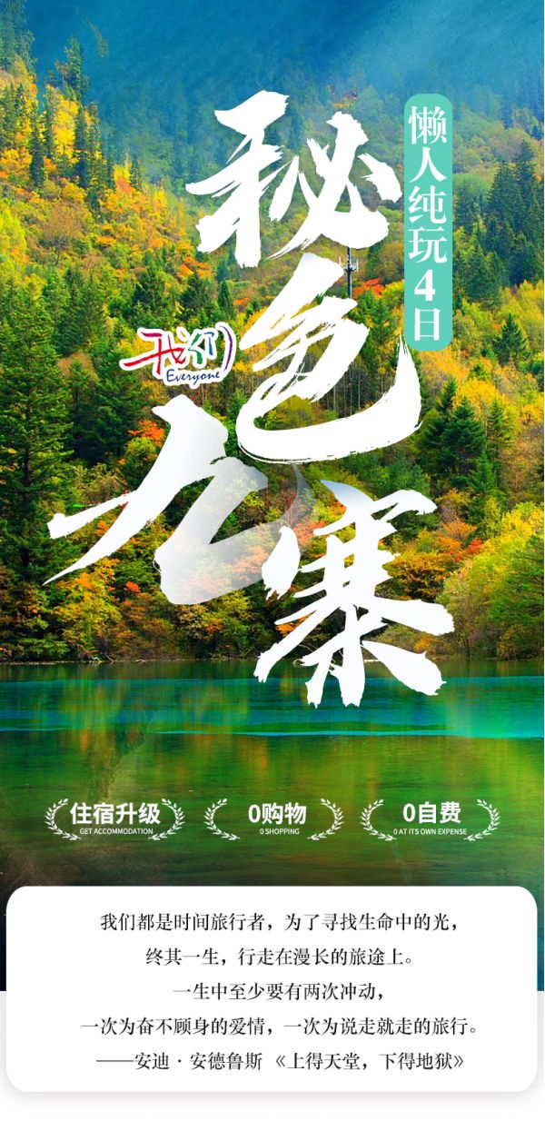3、九寨溝面積較大游客需求不一,因此主要以游客自助游形式游覽,如無領隊陪同望您諒解。游覽開始前導游會與您約定好集合時間,請務必按時到達指定地點,避免耽誤大家接下來的行程;