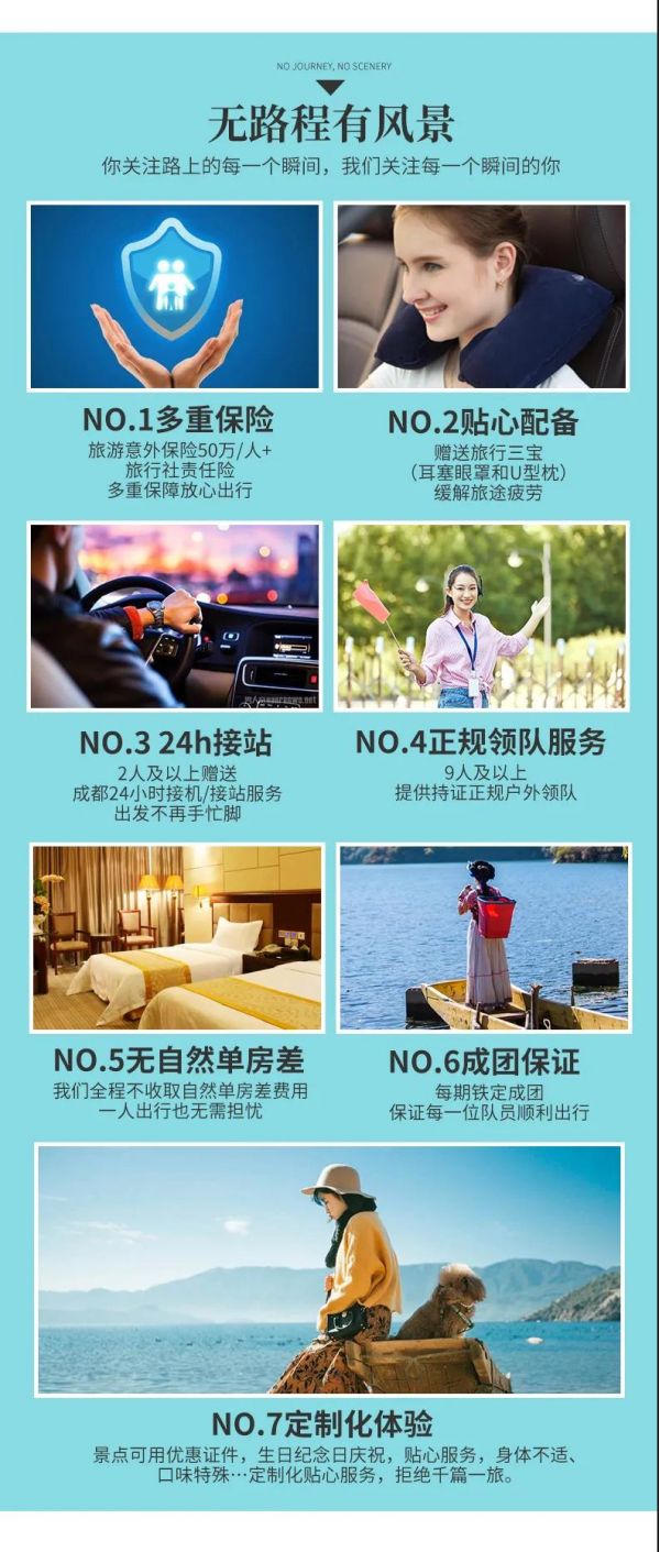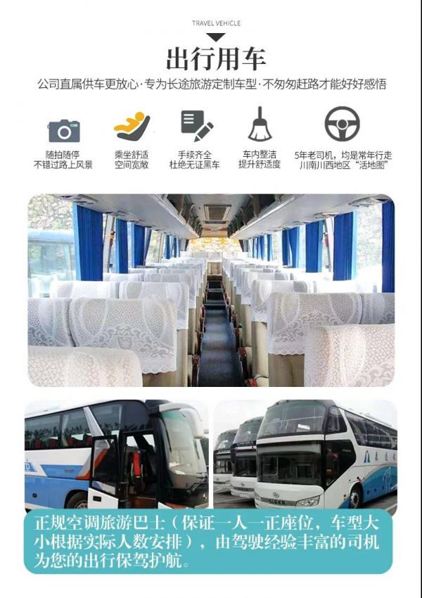 1、關(guān)于車輛交通:目前四川旅游市場8座以下車輛無法辦理旅游牌照,請(qǐng)游客知悉,以此理由提起的投訴我方拒不受理,望您諒解。