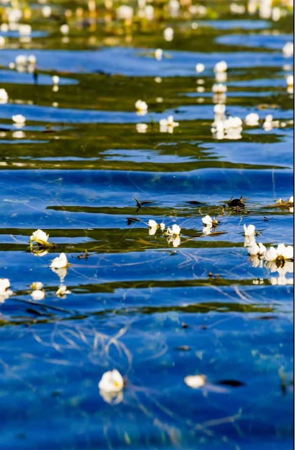 我們先登上【里格半島】,這個(gè)美麗的半島是瀘沽湖最具代表性的攝影圣地,這里有碧波如鏡的湖面,高空的白云和四周的山峰清晰地倒影水中,把湖山天影融為晶瑩的一體,微風(fēng)徐來,湖面上便蕩起層層漣漪,給靜謐的瀘沽湖添上一份生機(jī)靈動(dòng)。然后我們來到島上的【情人灘】,灘邊上的樹都是成對(duì)生長的,猶如情侶一般不離不棄地屹立在湖邊,情人灘的名字也由此而來;情人灘還有著瀘沽湖聞名遐邇的一道風(fēng)景——【水性楊花】,一朵朵純潔的小白花星星點(diǎn)點(diǎn)零落分布,遠(yuǎn)看卻又聲勢浩當(dāng)?shù)摹鞍哉肌绷苏麄€(gè)湖面,細(xì)長的花枝在水下隨波浪搖晃,那扭動(dòng)著的模樣像極了少女翩翩起舞,白色的花朵探出湛藍(lán)的天空和清澈的湖面,有如繁星掛滿夜空,美不勝收。