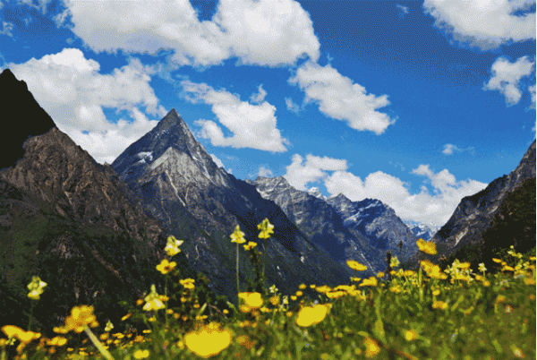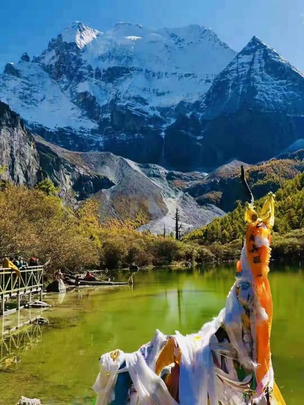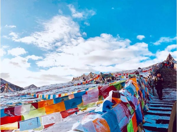 它是地理分界線,以西就是青藏高原東部,真正的藏區(qū)。山上常年有白雪,天幽藍,經(jīng)幡被風吹的唰唰作響。