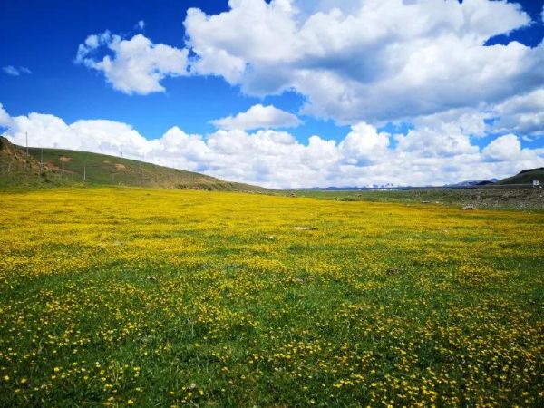 夏天,川西是活潑充滿生機的,草慢慢綠了,野花慢慢開了,蔚藍的天空……
